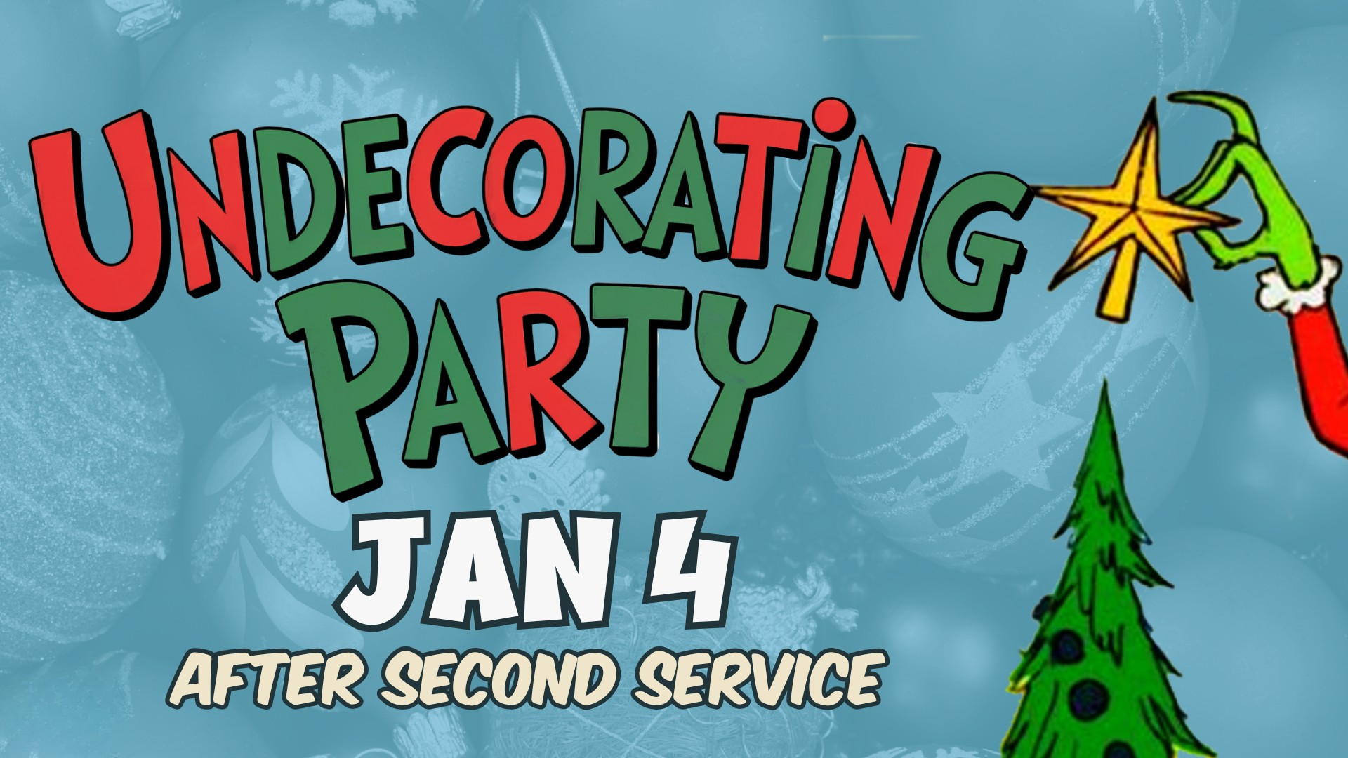 Join us after the second service for the Christmas UN-Decorating Party! Help take down the decorations as we wrap up the Christmas season together with fellowship and teamwork. We will have a pizza lunch!